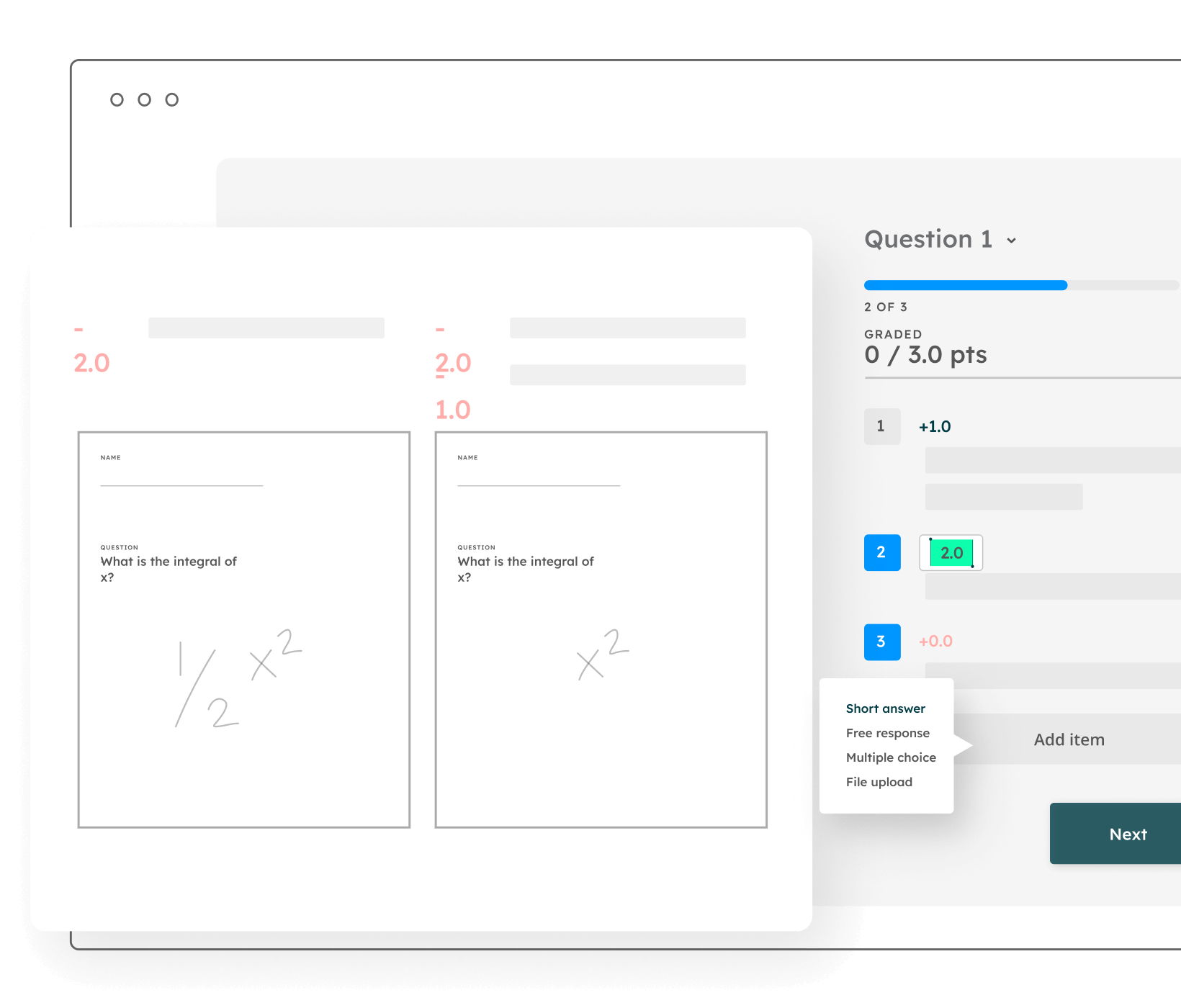 無論是實體授課、線上教學還是混成形式,教師皆可建立、管理及為紙本作業、答案卡、線上作業及程式碼作業評分。