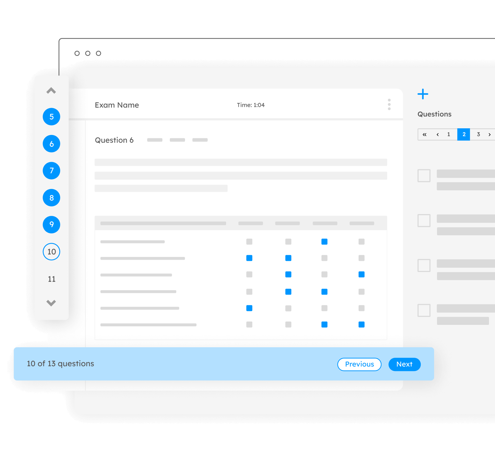ExamSoft 提供選擇題、圖片標記題、配對題等多重數位題型,且考試期間無需連上網路。