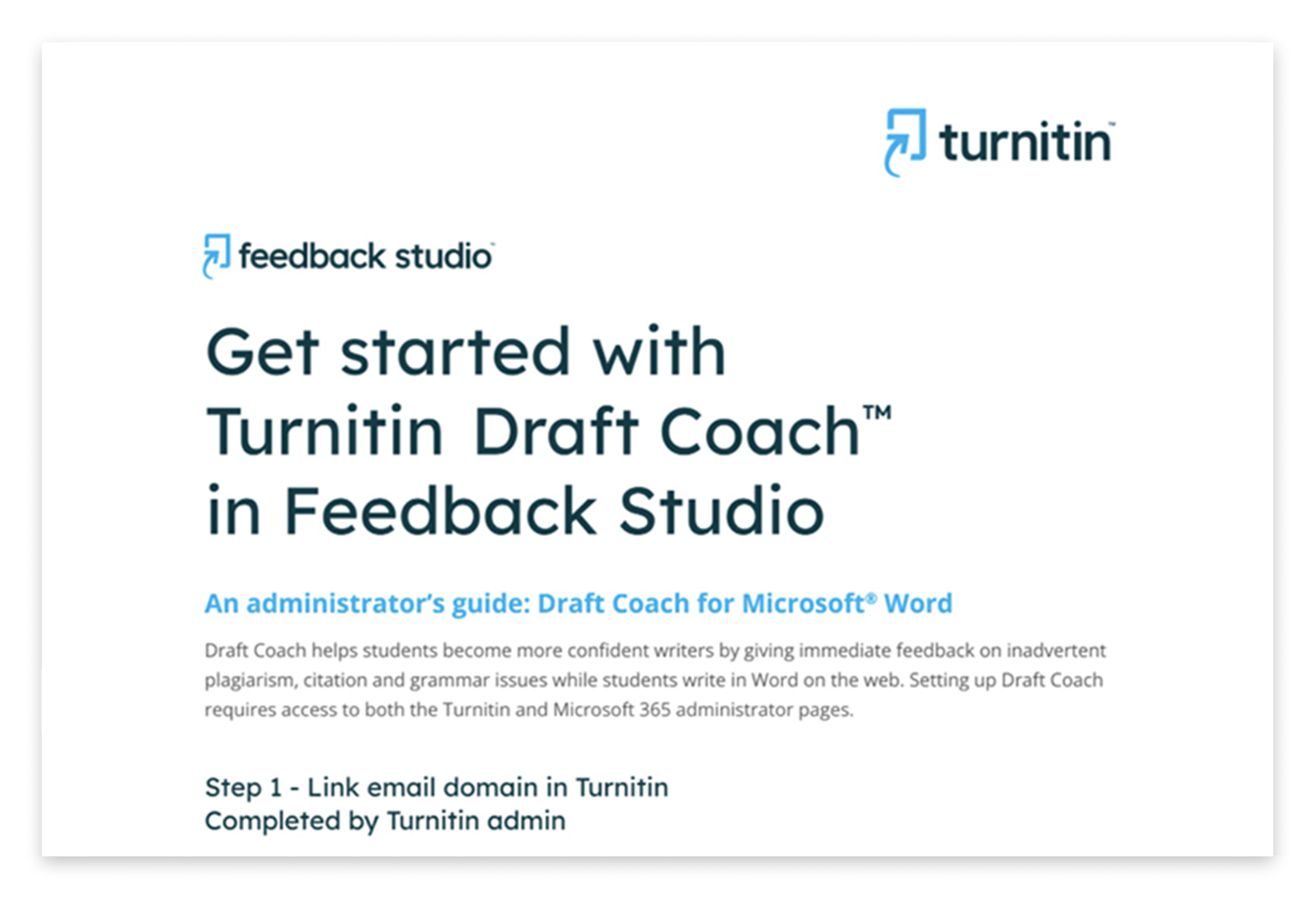 學生在使用 Google Docs™ 和 Microsoft® Word 網頁版寫作時,Draft Coach 可透過回饋建議協助學生培養引用、研究和寫作的技巧。查看專為管理者、教師和學生提供的資源,讓他們能夠更高效地使用Draft Coach。