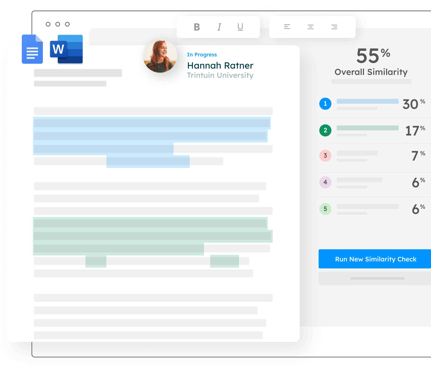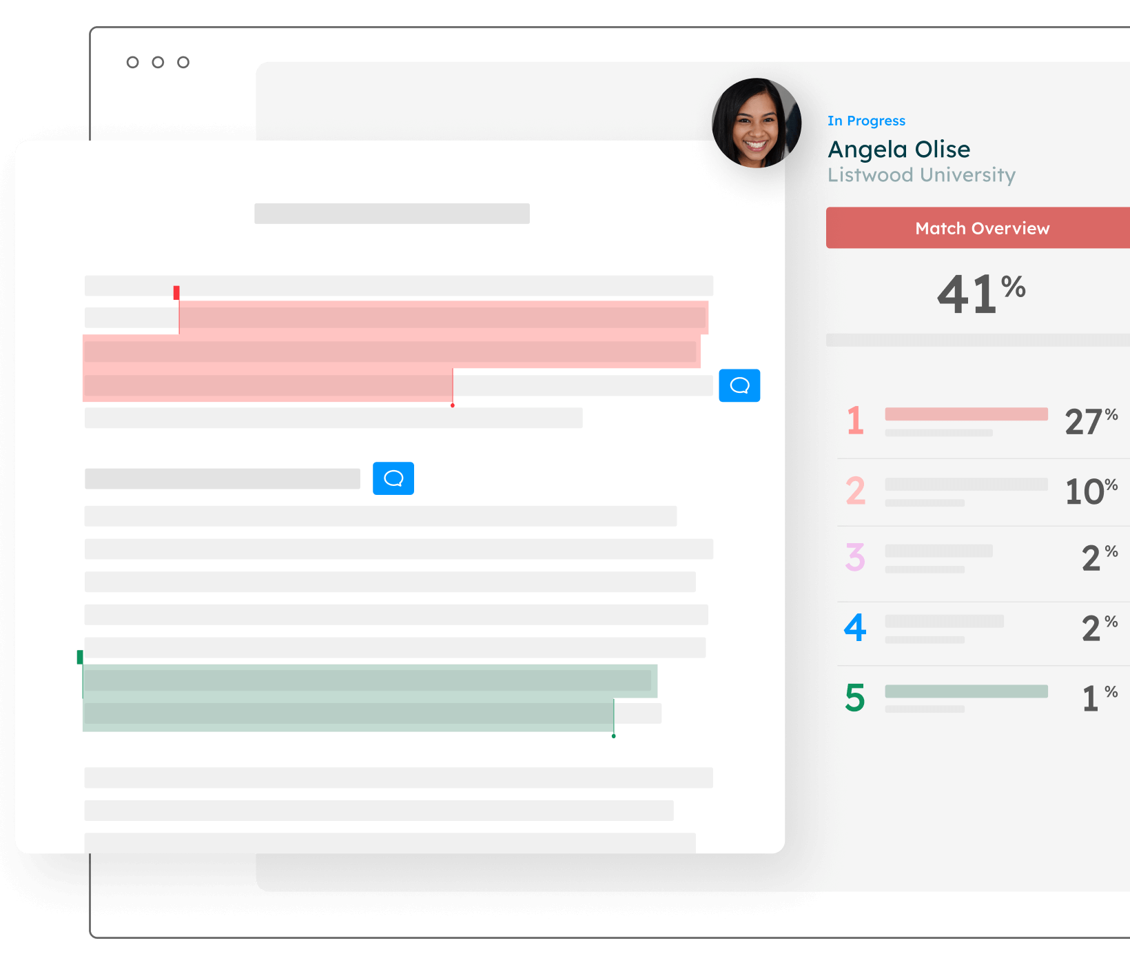 與全球龐大的網路資料、學術出版品和學生文稿比對,以套色段落顯示提示文稿相似之處,快速識別學生作品中非原創或不當引用的內容。