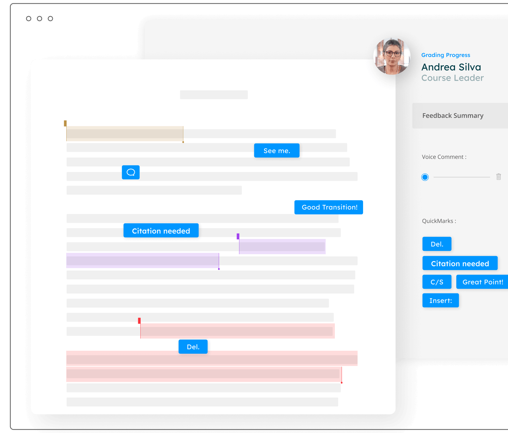 QuickMarks 快速拖放評語、文字和語音評論以及自動文法檢查,為學生提供可行的個別回饋。