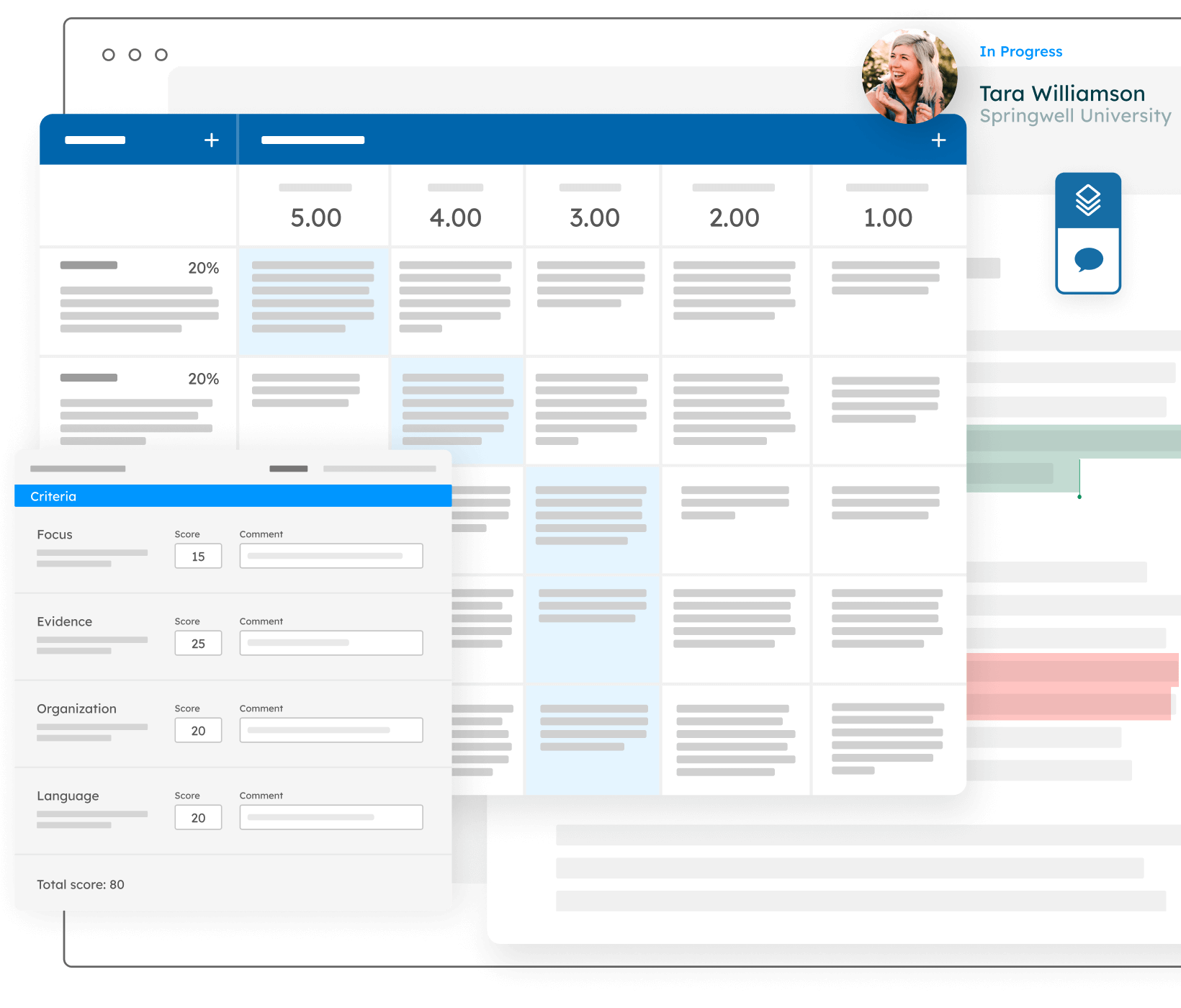 預設或自訂評分標準協助教師一致地評量學生作業,輕鬆將評分準則與作業中的回饋連結。